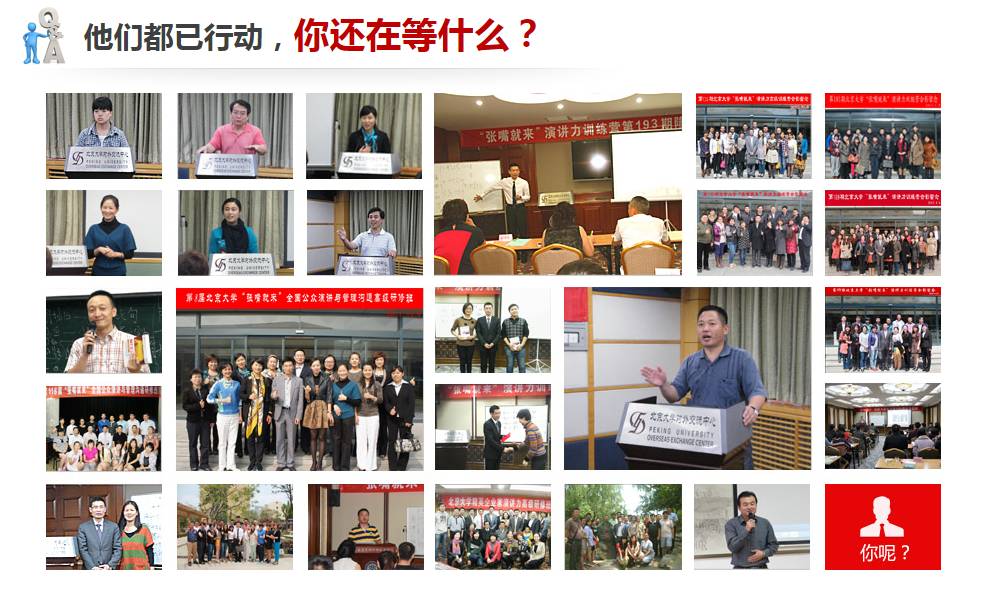 “一个人能面对多少人讲话,他的成就就有多大。”“演讲不是表演,演讲是能力,是职场人士必须具备的重要能力!”北大六天,无与伦比的六天。一粒种子,一树花开,一片绚烂!
